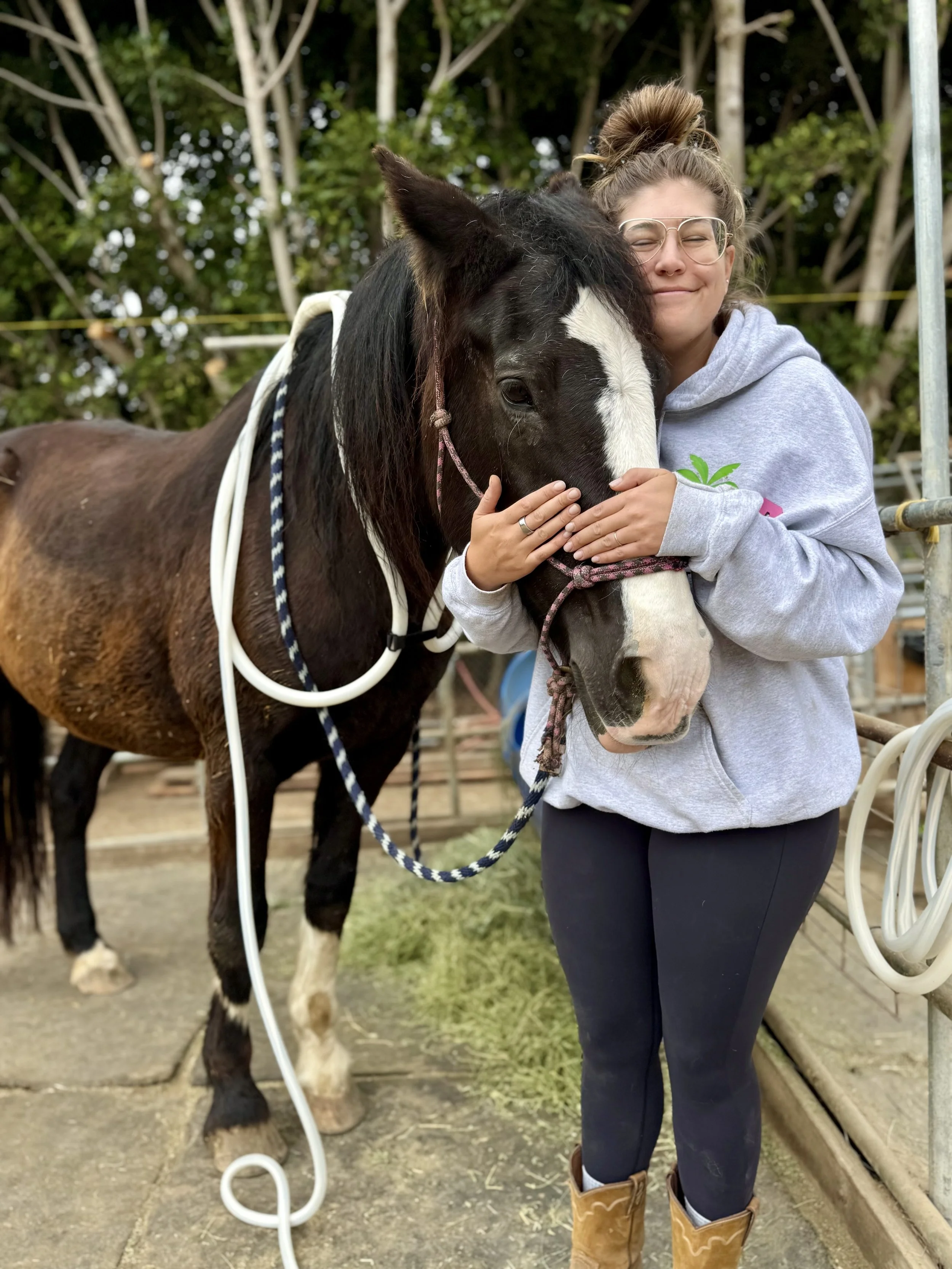 But the years have not been easy. Beginning with the Woolsey Fire in 2018, followed by destructive floods, and later the Franklin and Palisades Fires, Big Heart Ranch has weathered wave after wave of loss. Each disaster left behind broken shelters, collapsed shade structures, damaged fencing, and the remnants of systems that once sustained us. Every time, our community came together — neighbors, volunteers, and friends working side by side to guide more than 80 animals to safety, often through smoke, wind, and floodwaters. When we returned, we found ash where corrals once stood and fences twisted into the earth. Yet even in ruins, the animals and people who call this place home reminded us what endurance truly means.